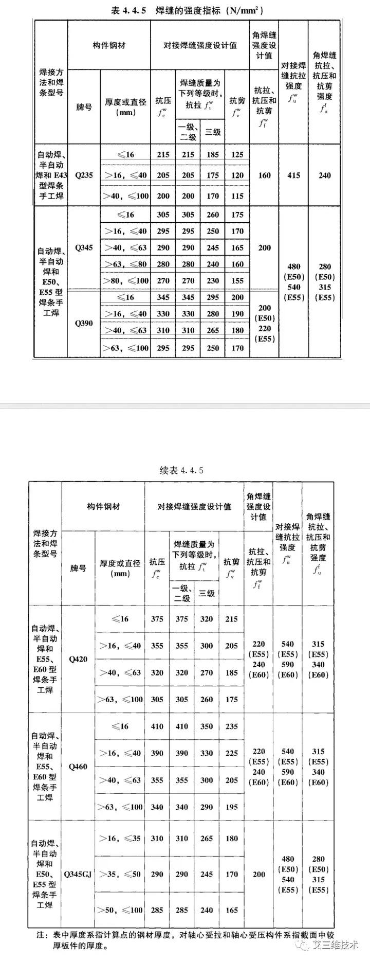 5.焊缝的强度指标应按下表采用并应符合下列规定:(强制执行条文)