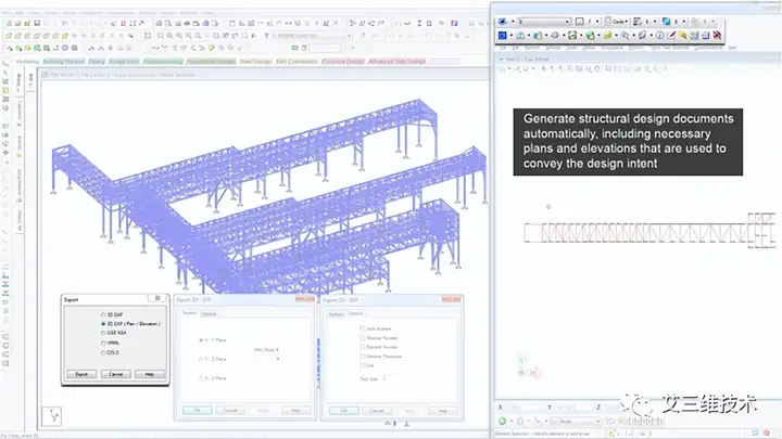 自动生成结构设计文档,包括用于传递设计意图的必要平面图和立面图。对三维模型所作的更改会在文档中自动更新。